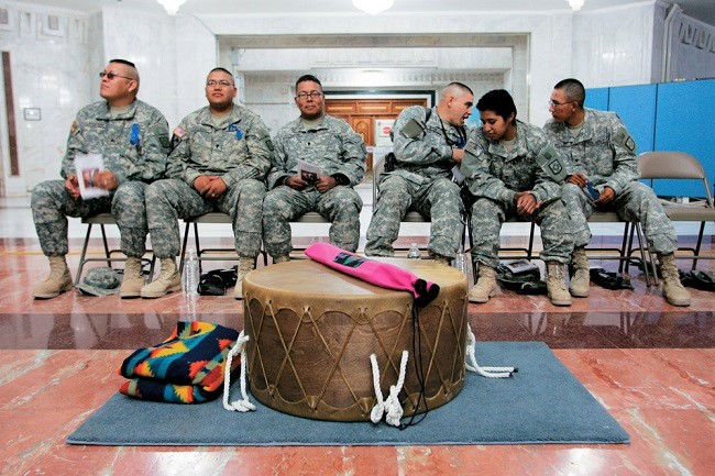 Soldiers taking part in the Native American Heritage Month celebration at Camp Victory, Iraq. (Photo Credit: Steven Clevenger, National Public Radio)